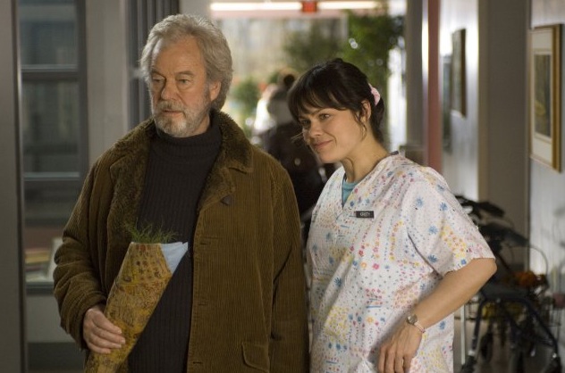 As a matter of fact, the whole film glows, despite the somber subject matter. Snowy Canadian plains form the background and Christie’s light hair and eyes, Pinsent’s white beard, the sun-drenched interiors, make us accept the inevitable more easily. That inevitable is that, as Fiona (the Christie character) sinks into Alzheimer’s, she—whether consciously or not—pays her husband Grant back for his philandering of many years ago by developing a devoted spousal relation with another of the patients at the assisted living facility where she has insisted on going. In an ultimate act of devotion to a wife who is no longer his, Grant helps her reunite with her new love when they are separated.