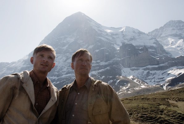 “North Face,” also based on a true event, describes the harrowing ascent of a Swiss Alp summit, the Eiger or ogre, in 1936. That, remember, was the year the Olympics were held in Berlin, an event that the infamous and gifted Leni Riefenstahl immortalized in the film “The Triumph of the Will.” In the present story, no one had, till now, scaled the Eiger to the top though the previous year climbers had died trying. Now two teams, one German and one Austrian, make the attempt. A crowd of onlookers gathers in the luxurious hotel at the foot of the mountain, equally ready to cheer a victory or witness a tragedy. The mountain is treacherous as mountains will be, the weather uncertain, moving swiftly from sunshine to snowstorm. The four climbers, in the pathetically inadequate gear of the time, go up a mountainside as steep as any wall, carve a route through ice patches, hang on ledges barely wide enough for one man, pull themselves up or, spider-like, swing across the mountainside, risking death every difficult minute. In severe conditions, the climb takes several days, with dire consequences.