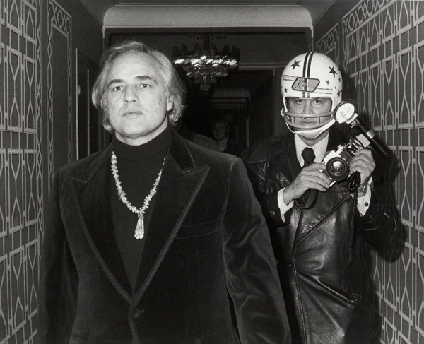 The picture says it all. A defiant Marlo Brando trailed by a helmet-clad photographer. What curious dynamic exists between a celeb shutterbug and the stars he hunts. There’s a codependency, certainly, and an admiration that is mutual, likely. But is there sympathy, too? Hateful understanding, perhaps. How can you tell if Brando and his paparazzo ever got along?