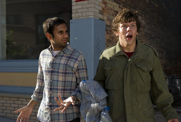Coming off of The Social Network, Jesse Eisenberg slides way down the food chain. He plays a pizza driver caught up in a murder plot hatched by the nincompoop son of a lottery winner (Danny McBride) who wants to live the American dream of opening a tanning store that doubles as a brothel. To pay for a professional hit, his accomplice locks a bomb vest on the pizza boy’s body to force him to rob a bank, which drags in a friendly teacher (Aziz Ansari, a veteran of the Apatow circuit).