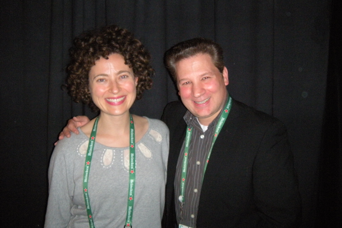I got to meet several filmmakers, including writer-director-producer Jenny Deller (pictured, with me) whose feature film Future Weather will be having its world premiere here at Tribeca on April 29th. Deller was enjoying this moment, begun roughly two months before with a phone call from the Tribeca programmers asking if she’d like to screen her film at the festival; to which I imagine Deller responded “hell yea!”