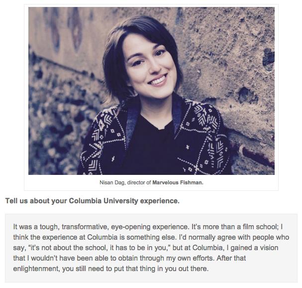 Here’s a sample from an interview with a Columbia University (@columbia) filmmaker named Nisan Dag: