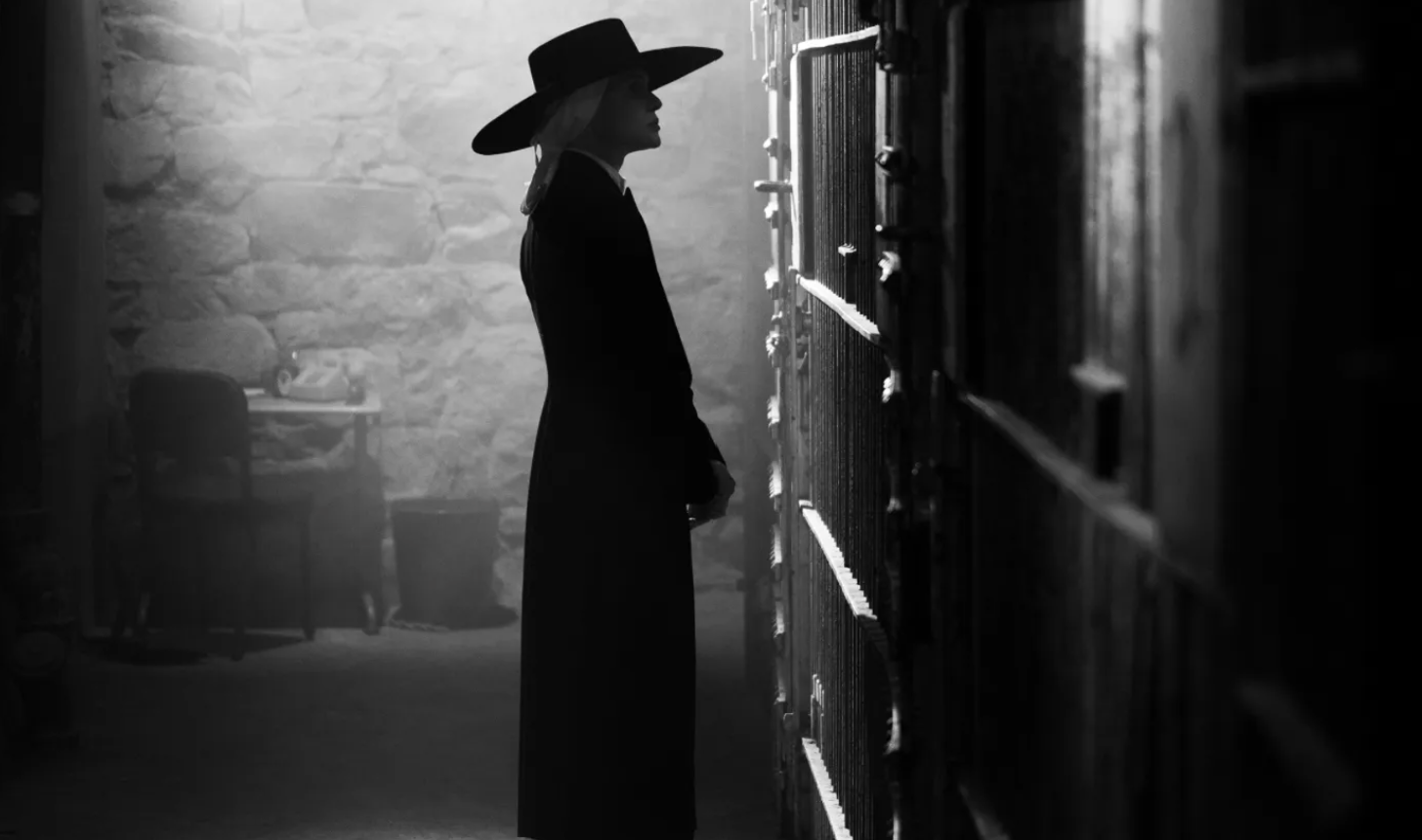 Appearing in a black duster and a wide-brimmed black cowboy hat (more of a Zorro-esque brim), Bosworth’s character speaks softly and directly as she engages her targets in their final moments, letting them reflect.