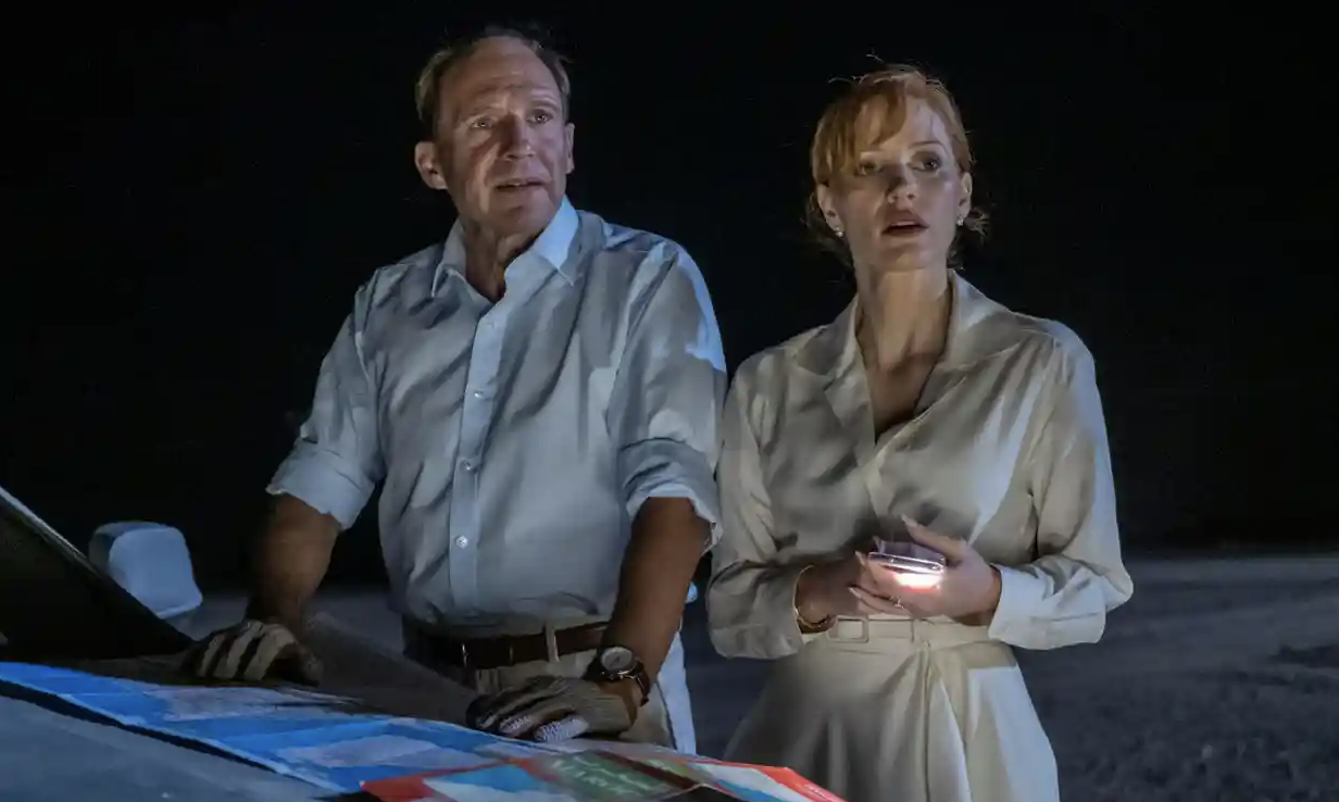 David (Ralph Fiennes) and Jo (Jessica Chastain) are traveling to a party taking place in the Moroccan desert. Late, lost, and frustrated, the two seem to already be at odds with one another.