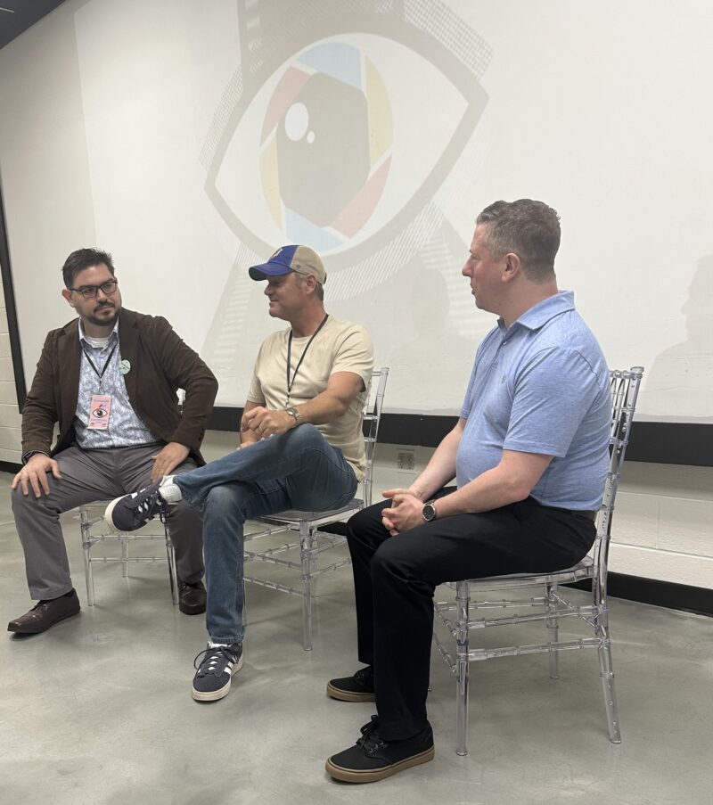 “Secret Game” director Gregory de Deugd (in the middle) and “Dax & Lio: Shoot Your Shot” writer Paul Moore at left, with author Eric Althoff on the right